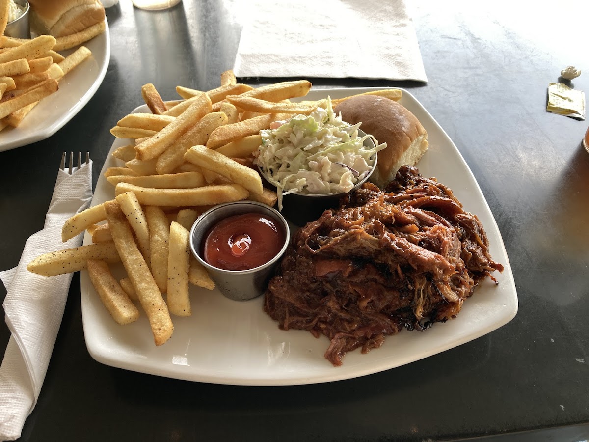 Cool little spot to grab lunch by the airport. The pulled pork was very good. Service was good. I was bummed that I was not offered a refill on my sweet tea. Overall, good experience, I will be back